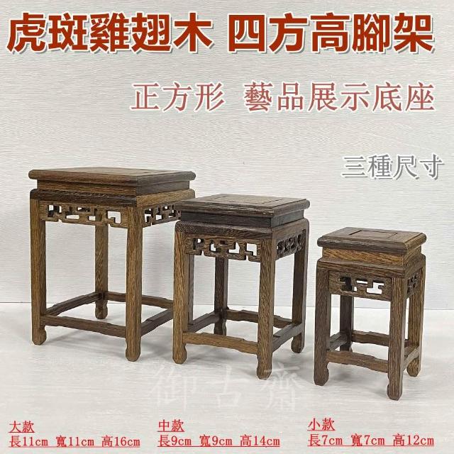 御古齋虎斑雞翅木 四方高腳架 正方形 藝品展示底座 小花台 底座 實用擺設 三種尺寸可選 0927