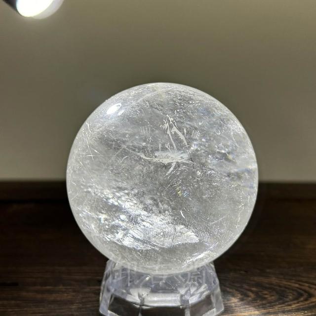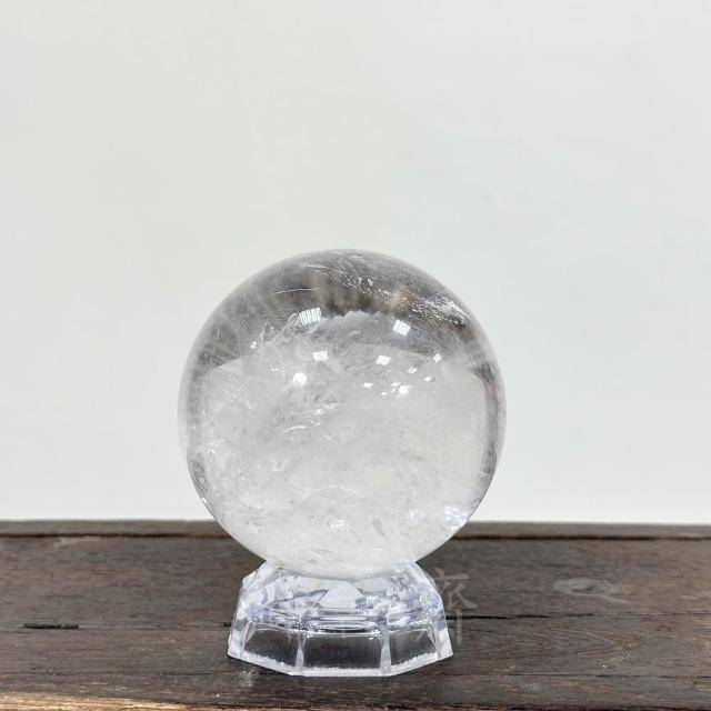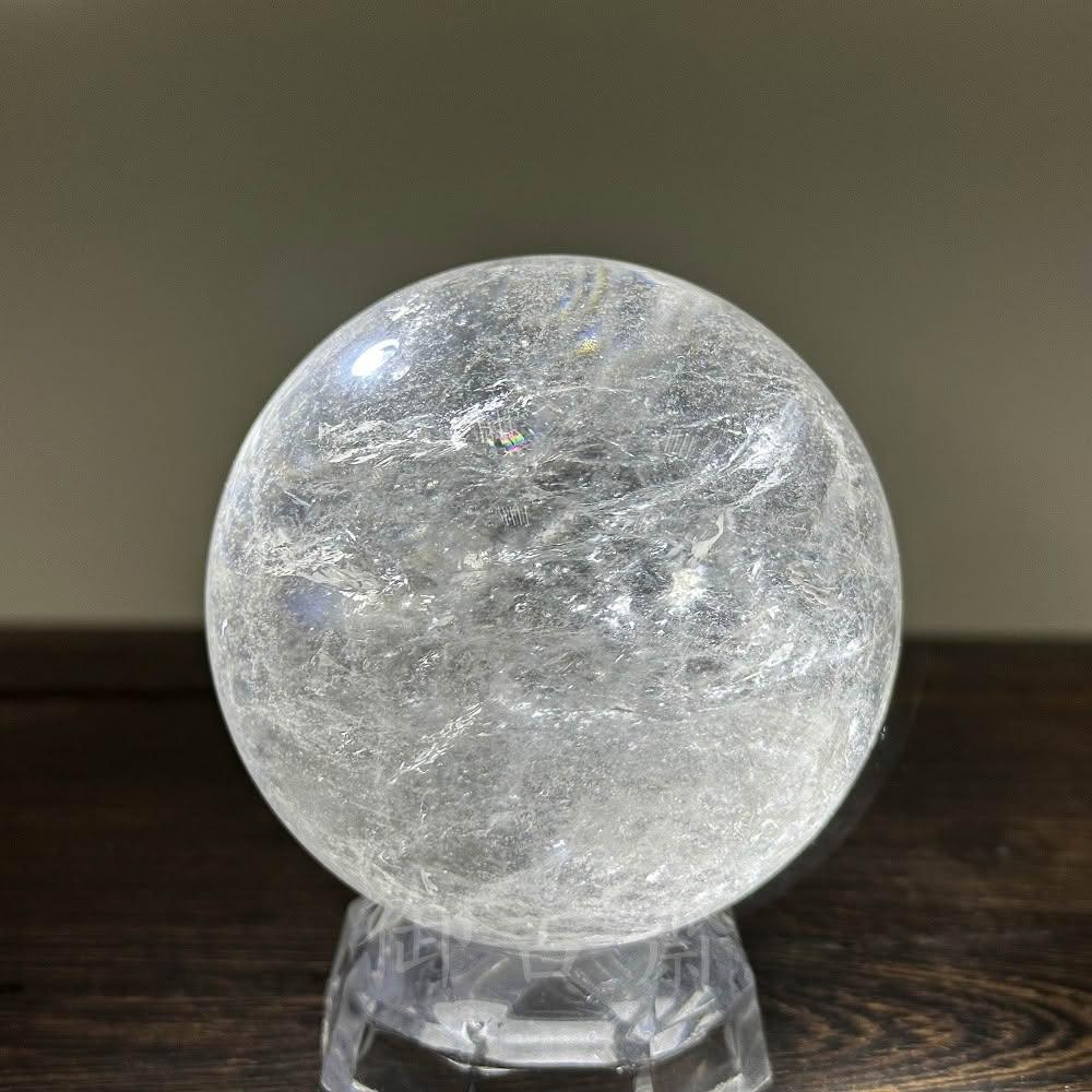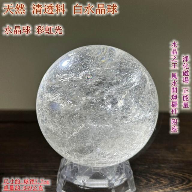 御古齋天然 清透料 白水晶球 水晶球 彩虹光 淨化磁場 正能量 水晶之王 風水開運擺件 附座 0814