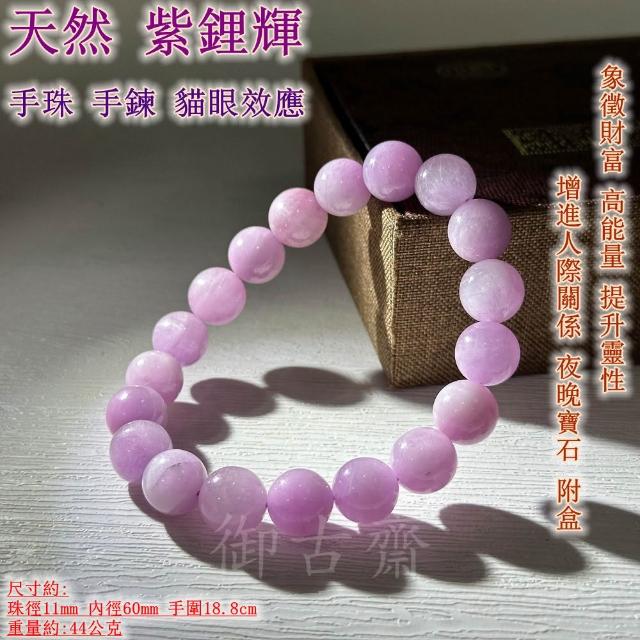 御古齋天然 紫鋰輝 手珠 手鍊 貓眼效應 象徵財富 高能量 提升靈性 增進人際關係 夜晚寶石 附盒 111201