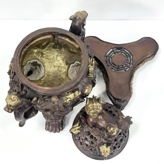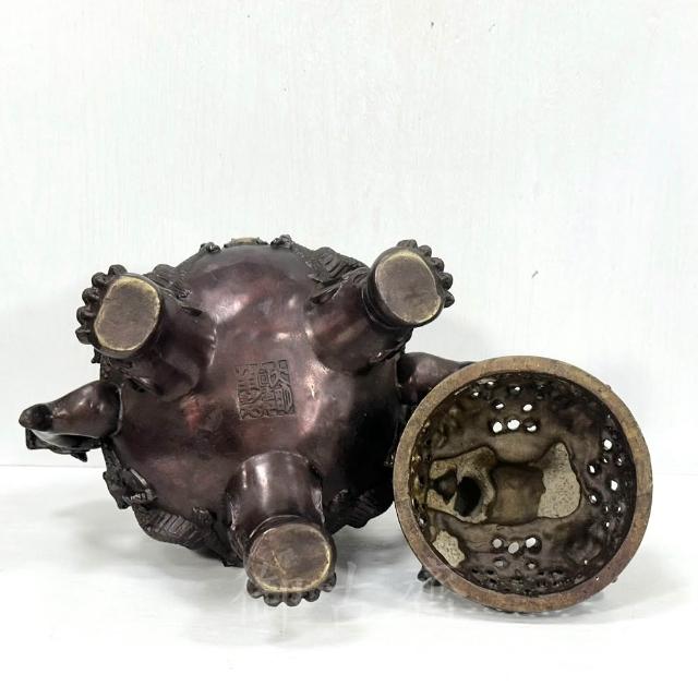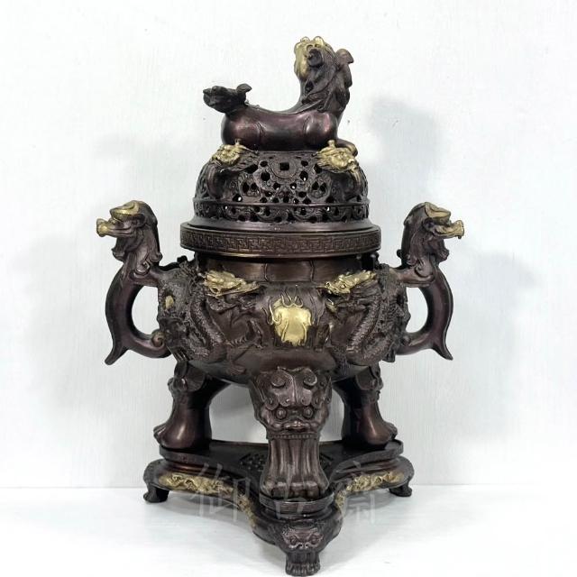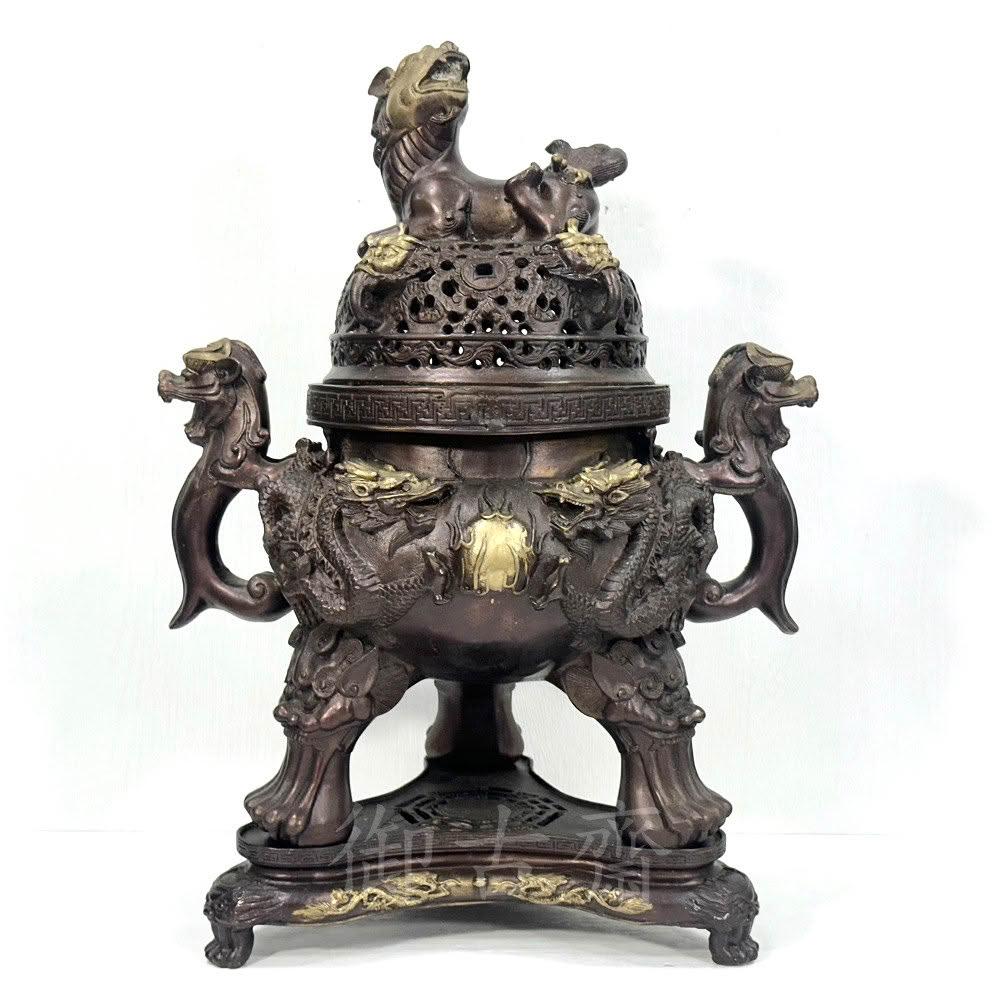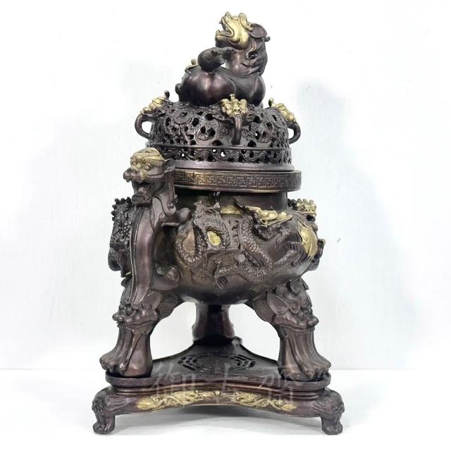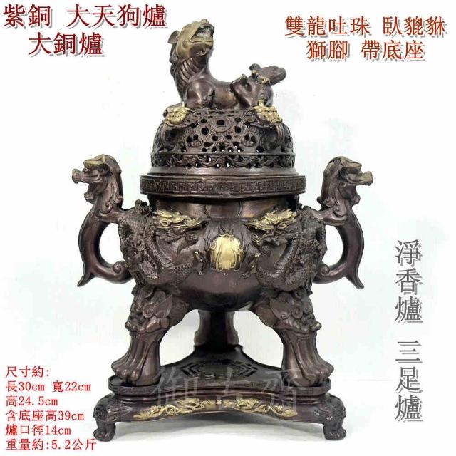 御古齋紫銅 大天狗爐 大銅爐 雙龍吐珠 臥貔貅 獅腳 帶底座 淨香爐 養身禪坐 祈神禮佛 1119