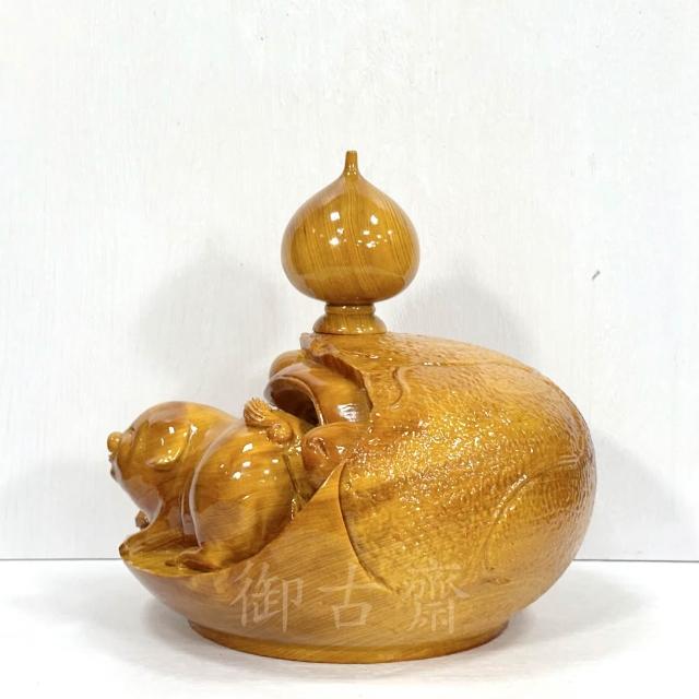 御古齋寮國檜木 精雕 如意招財 福氣豬 聚寶盆 重油 諸事大吉 招財進寶 聚氣納福 風水開運擺件 020502