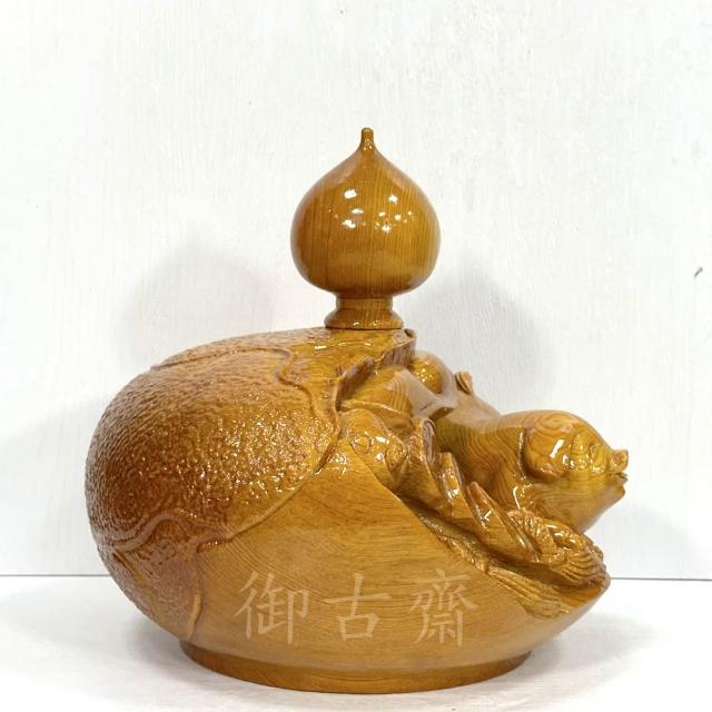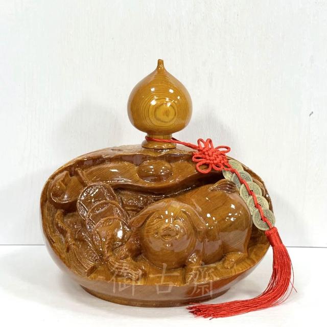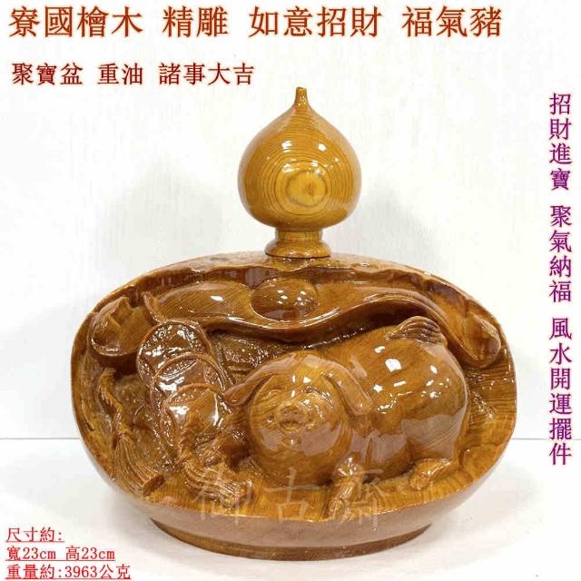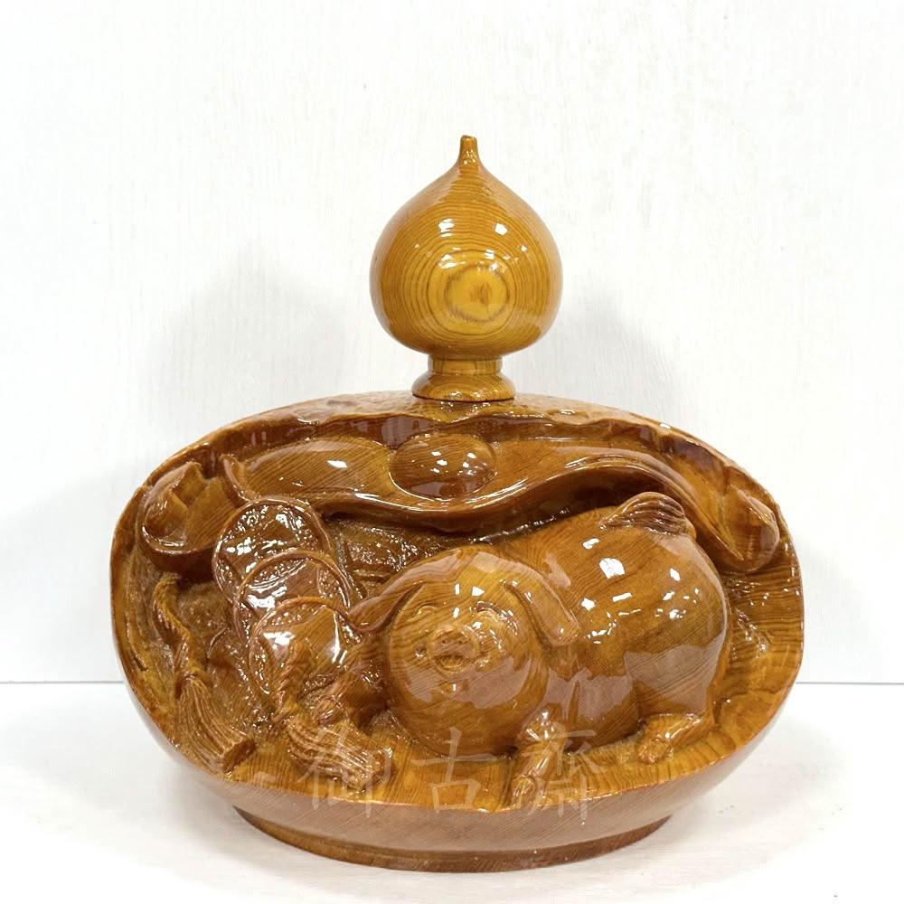 御古齋寮國檜木 精雕 如意招財 福氣豬 聚寶盆 重油 諸事大吉 招財進寶 聚氣納福 風水開運擺件 020502