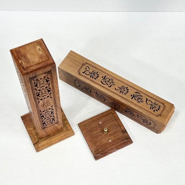 御古齋花梨木 鏤空雕刻 站立式 線香盒 立式香爐 內裡磁吸 香座 香插 細緻工藝 坐禪養生 0210