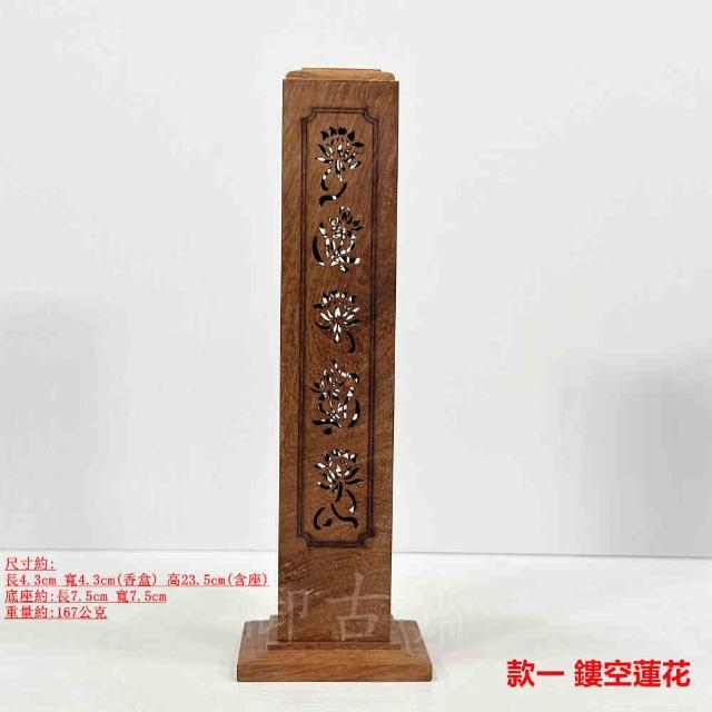 御古齋花梨木 鏤空雕刻 站立式 線香盒 立式香爐 內裡磁吸 香座 香插 細緻工藝 坐禪養生 0210
