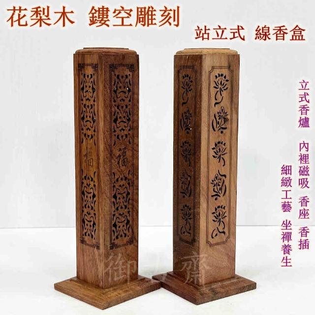 御古齋花梨木 鏤空雕刻 站立式 線香盒 立式香爐 內裡磁吸 香座 香插 細緻工藝 坐禪養生 0210