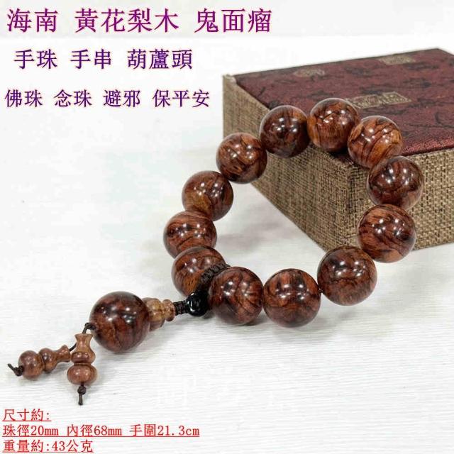 御古齋海南 黃花梨木 鬼面瘤 手珠 手串 葫蘆頭 佛珠 念珠 避邪 保平安 佛教平安品 附盒 112703