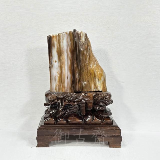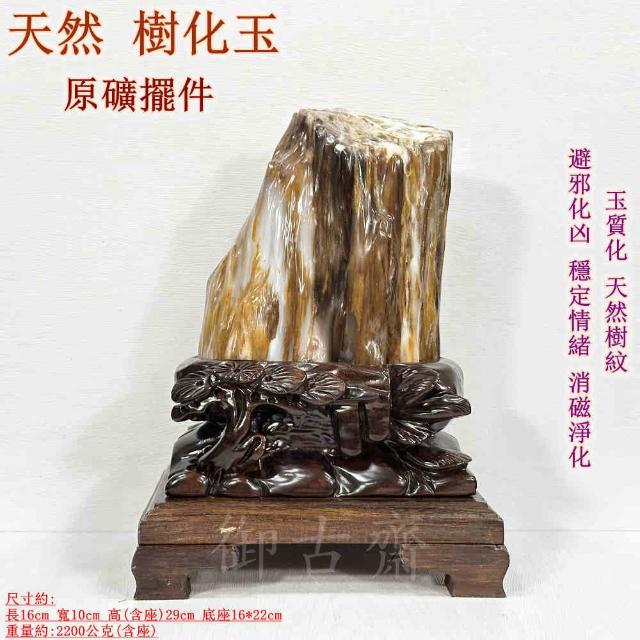 御古齋天然 樹化玉 原礦擺件 玉質化 天然樹紋 避邪化凶 穩定情緒 消磁淨化 訂製實木座 062704