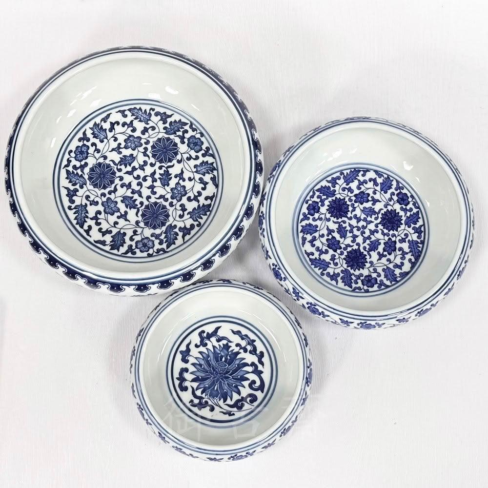 御古齋景德鎮 青花瓷 花開富貴 大茶洗 筆洗 花盆 茶道六君子 茶具配件 陶瓷工藝品 多種尺寸 0725