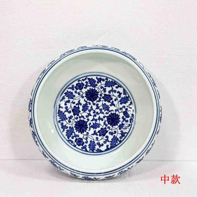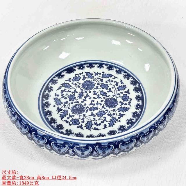 御古齋景德鎮 青花瓷 花開富貴 大茶洗 筆洗 花盆 茶道六君子 茶具配件 陶瓷工藝品 多種尺寸 0725