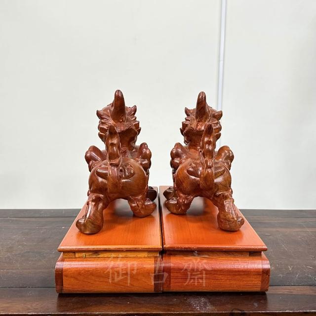 御古齋花梨木 精雕 飛天貔貅一對 雕工細緻 招財進寶 財源廣進 鎮宅化煞 風水開運擺件 附座 0321