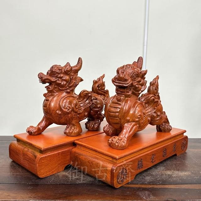 御古齋花梨木 精雕 飛天貔貅一對 雕工細緻 招財進寶 財源廣進 鎮宅化煞 風水開運擺件 附座 0321