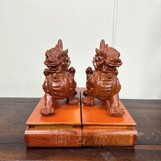 御古齋花梨木 精雕 飛天貔貅一對 雕工細緻 招財進寶 財源廣進 鎮宅化煞 風水開運擺件 附座 0321