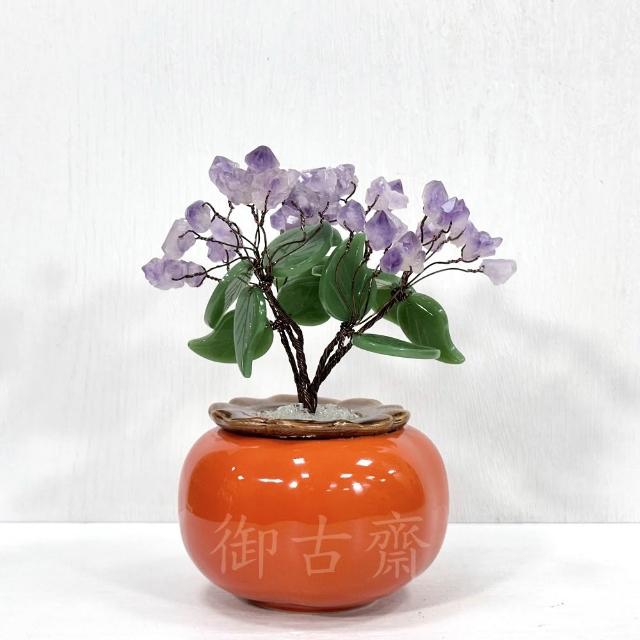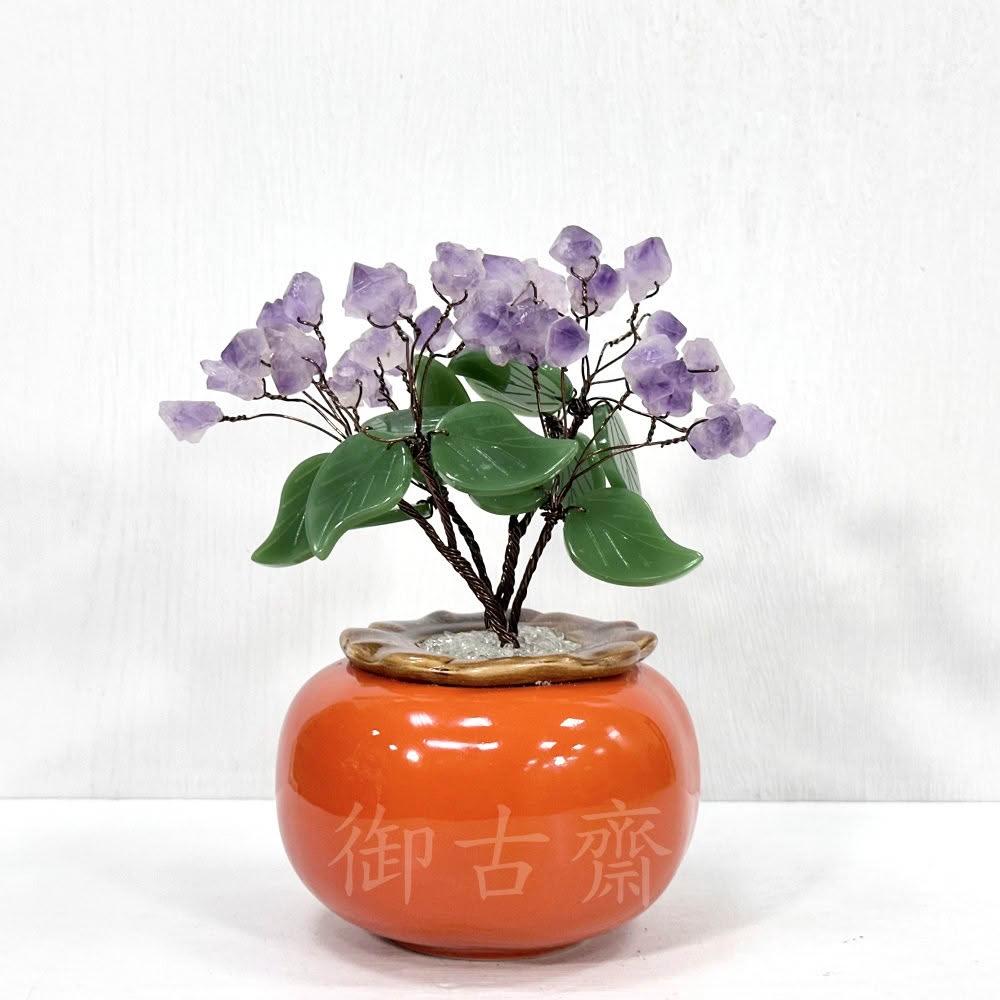 御古齋天然 紫水晶 柿子造型 招財樹 陶瓷 水晶樹 盆栽樹 增智慧 招貴人 事事如意 開運招財 裝飾擺設 1204