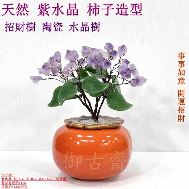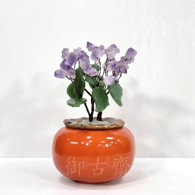 御古齋天然 紫水晶 柿子造型 招財樹 陶瓷 水晶樹 盆栽樹 增智慧 招貴人 事事如意 開運招財 裝飾擺設 1204