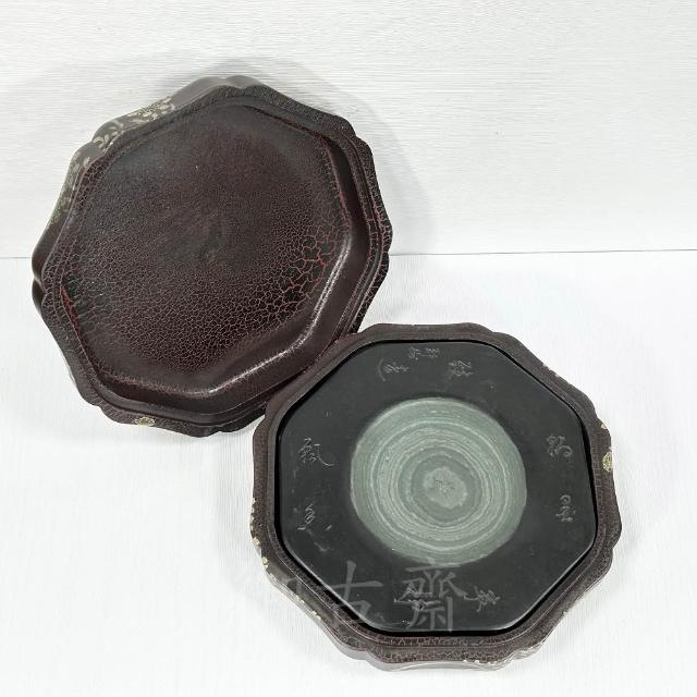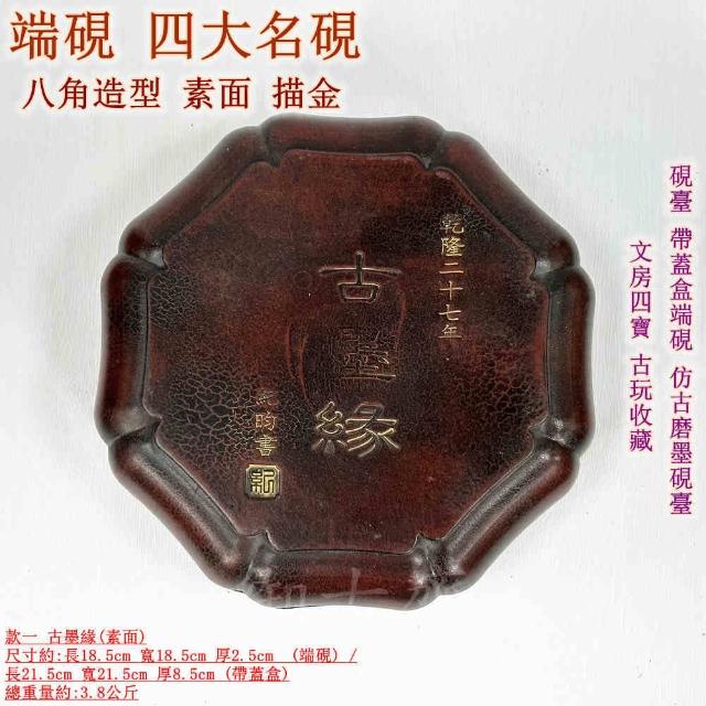 御古齋端硯 四大名硯 八角造型 描金 素面 綠端硯 硯臺 帶蓋盒端硯 仿古磨墨硯臺 文房四寶 古玩收藏 0321
