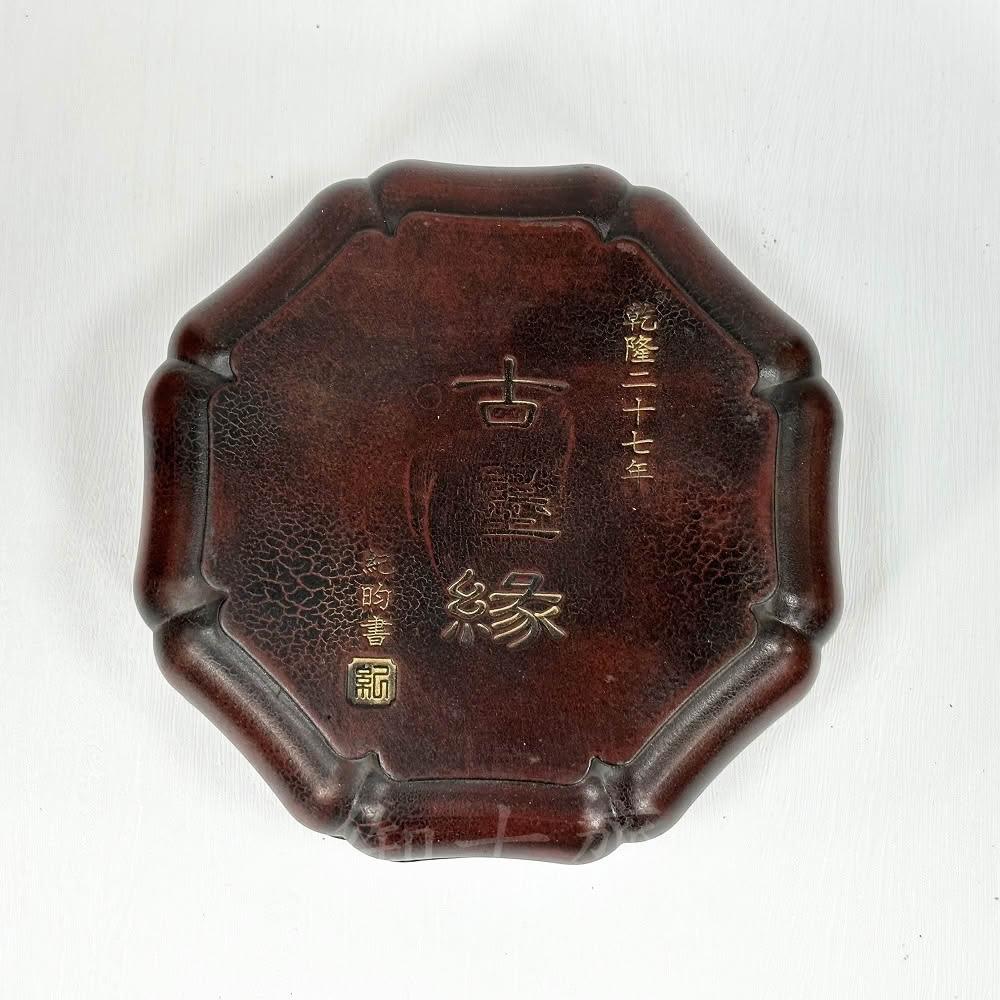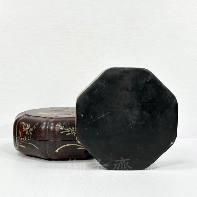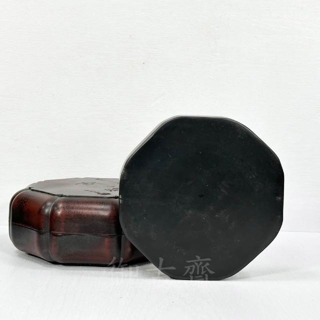 御古齋端硯 四大名硯 八角造型 描金 素面 綠端硯 硯臺 帶蓋盒端硯 仿古磨墨硯臺 文房四寶 古玩收藏 0321