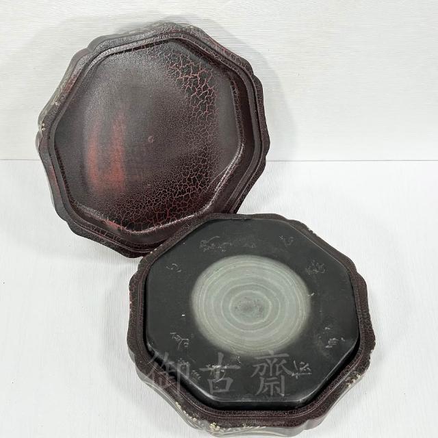 御古齋端硯 四大名硯 八角造型 描金 素面 綠端硯 硯臺 帶蓋盒端硯 仿古磨墨硯臺 文房四寶 古玩收藏 0321