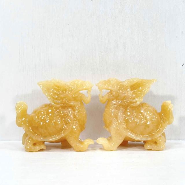 御古齋天然 黃玉 精雕龍龜 一對 榮耀歸來 聚財龍龜 招財旺運 祥瑞神獸 鎮宅守護 風水開運擺件 0211