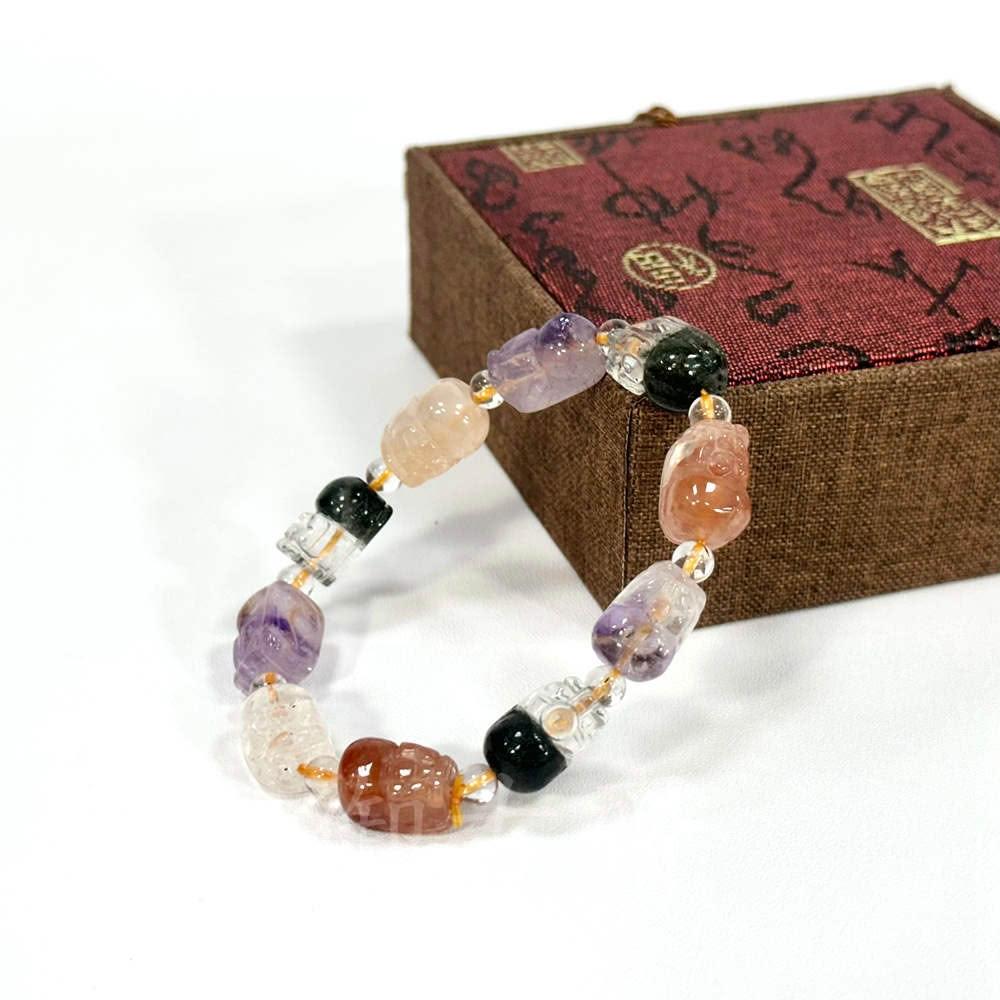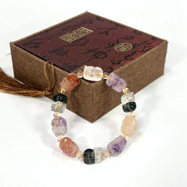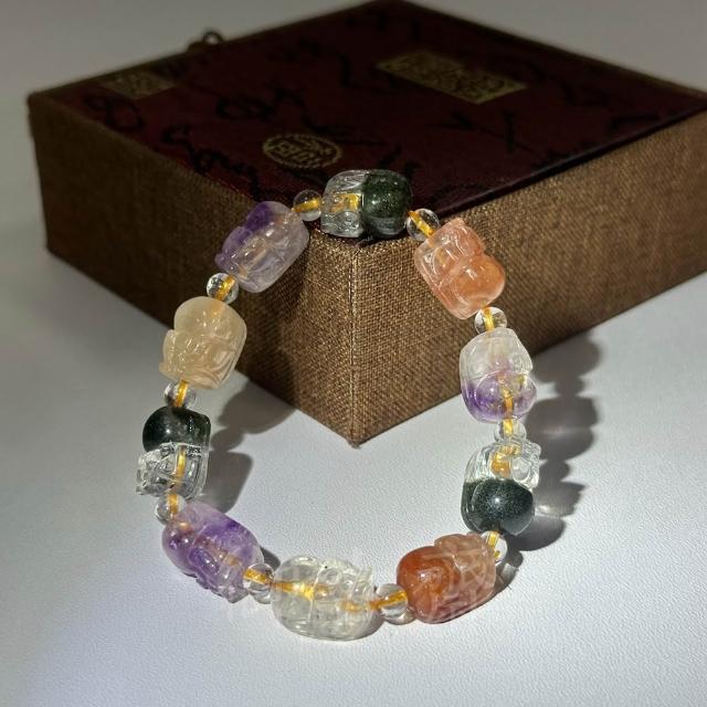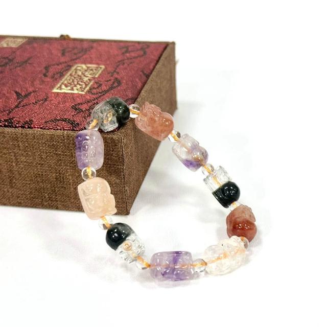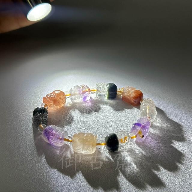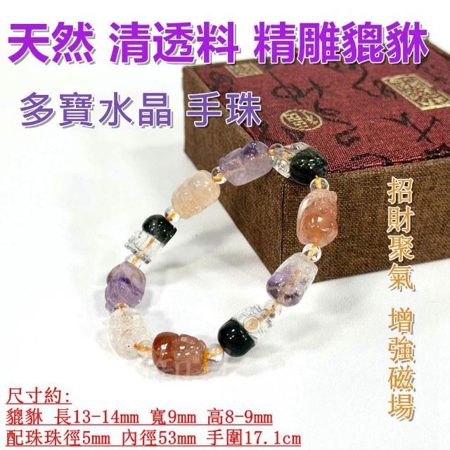 御古齋天然 清透料 精雕貔貅 多寶水晶 手珠 手鍊 開運手鍊 招財聚氣 增強磁場 提升正能量 附盒 0521