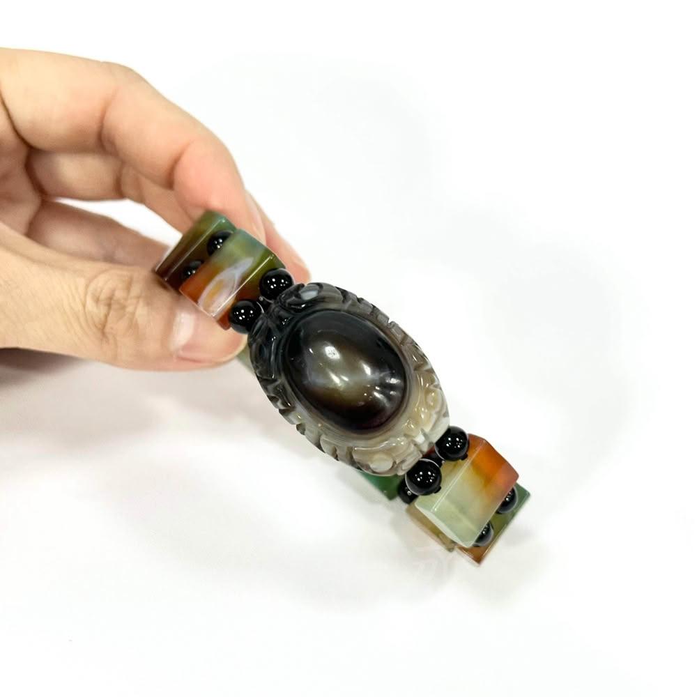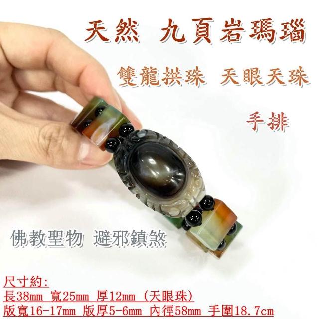 御古齋天然 九頁岩瑪瑙 雙龍拱珠 天眼天珠 手排 佛教聖物 避邪鎮煞 事事順心 開運招財 附盒 0513