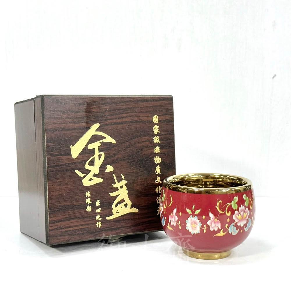 御古齋琺瑯彩瓷 掐絲金盞杯 茶盞茶杯 手工建盞 滿彩工藝 富麗美觀 古典高雅 古韵茶器 附盒 1204