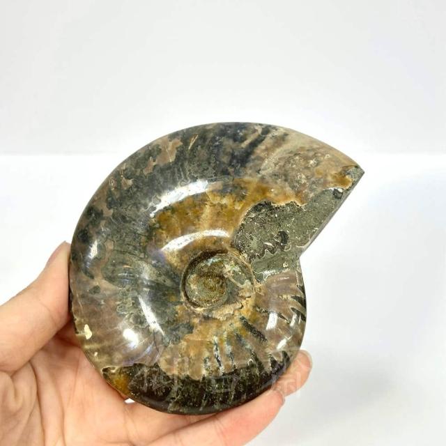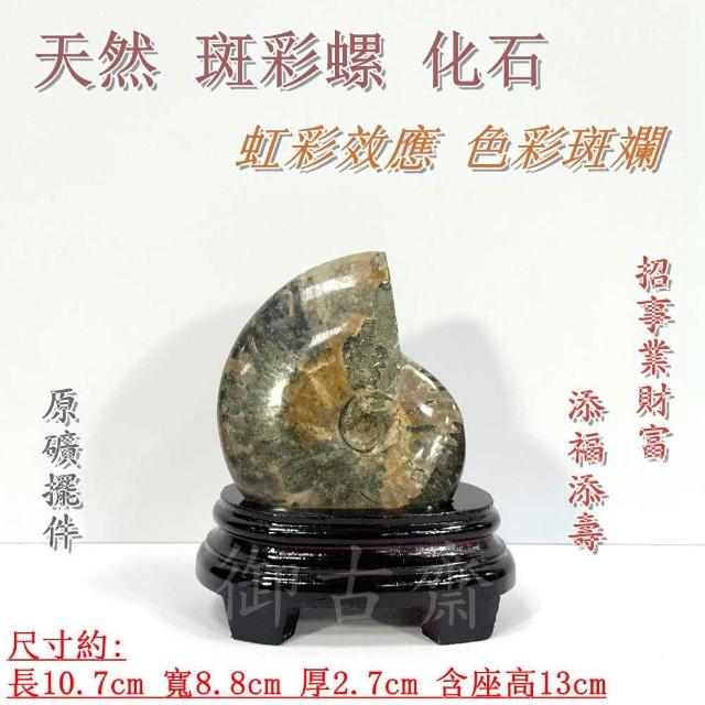 御古齋天然 斑彩螺 化石 虹彩效應 色彩斑斕 天然化石 招事業財富 添福添壽 開運原礦擺件 附座 0520