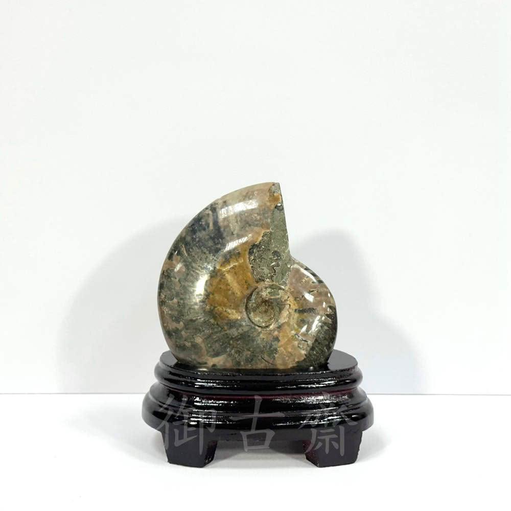 御古齋天然 斑彩螺 化石 虹彩效應 色彩斑斕 天然化石 招事業財富 添福添壽 開運原礦擺件 附座 0520