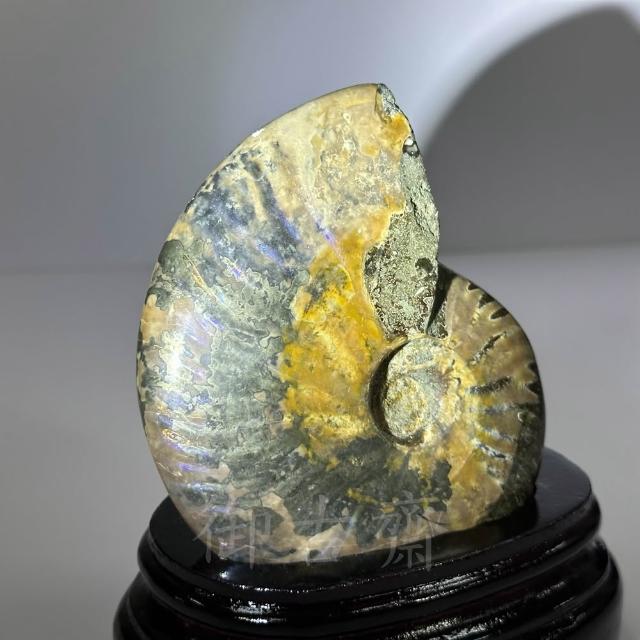 御古齋天然 斑彩螺 化石 虹彩效應 色彩斑斕 天然化石 招事業財富 添福添壽 開運原礦擺件 附座 0520