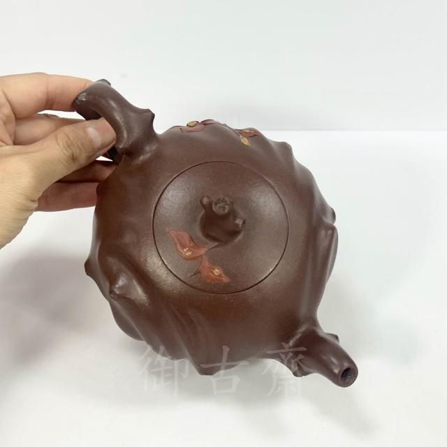 御古齋中國宜興 紫砂壺 朱氏 報春壺 梅報春 名家壺 470cc 手工製作 泡茶壺 有落款 070305