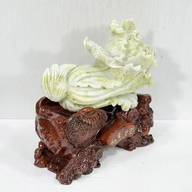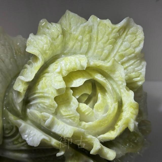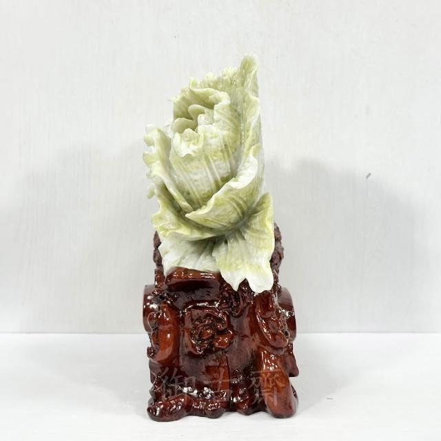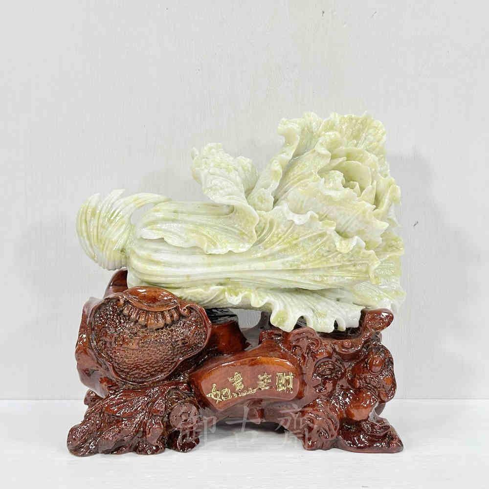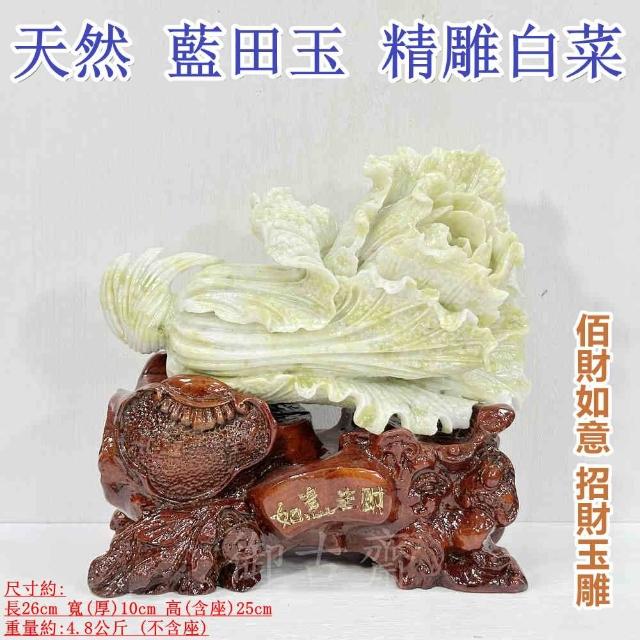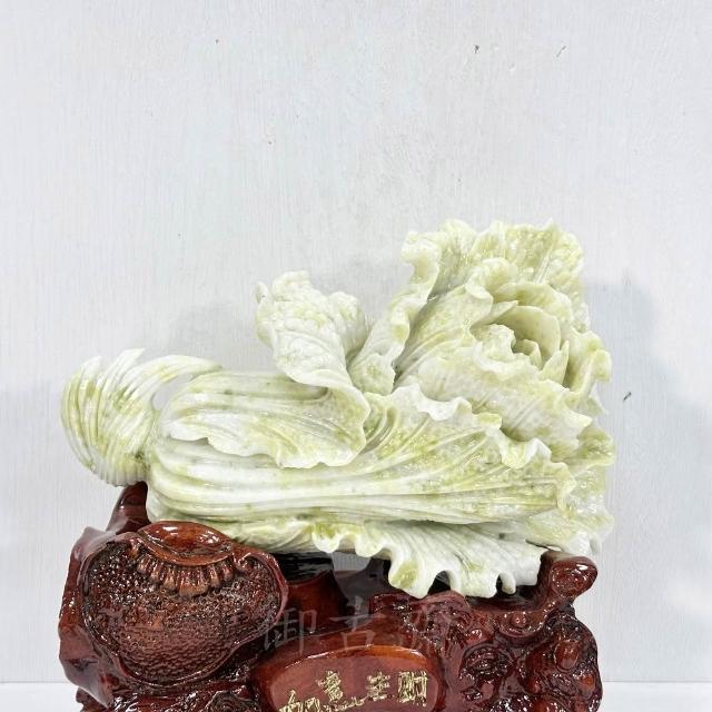 御古齋天然 藍田玉 精雕白菜 佰財如意 招財玉雕 玉石擺件 居家辦公室 招財開運擺件 附座 0317