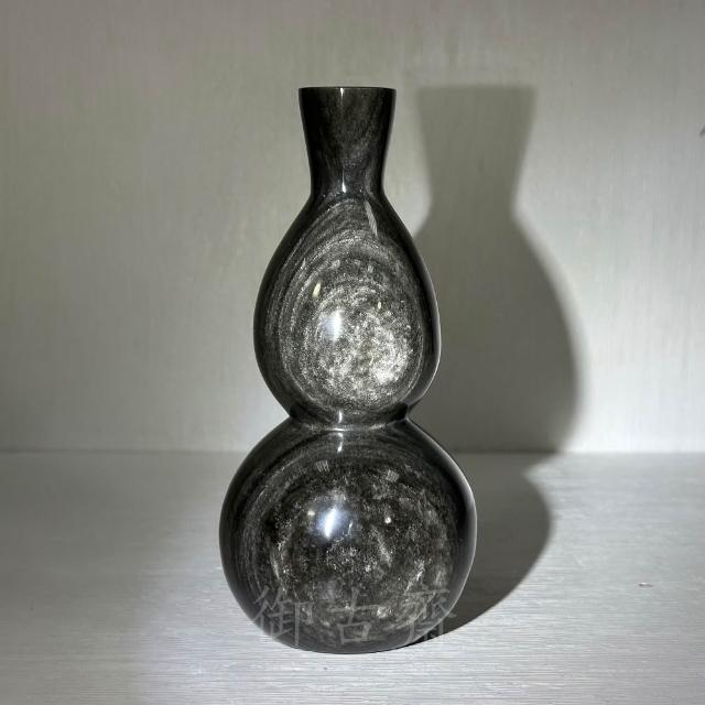 御古齋天然 銀沙黑曜 葫蘆 帶眼 吉祥福祿 擺葫生福 招財納福 擋災化煞 辟邪鎮宅 風水開運擺件 031103