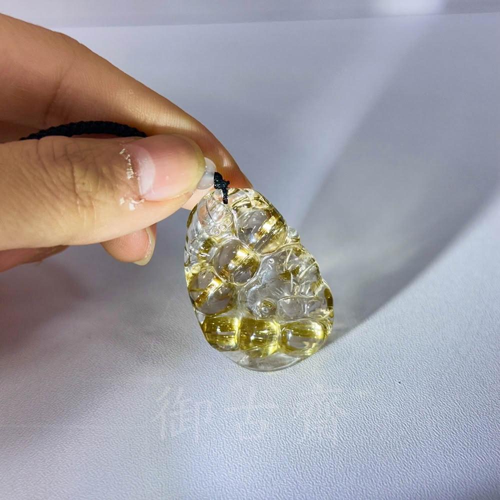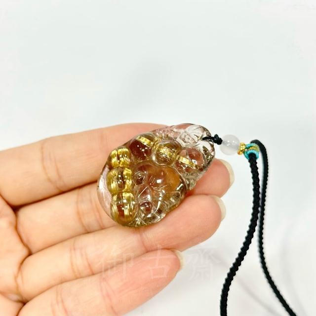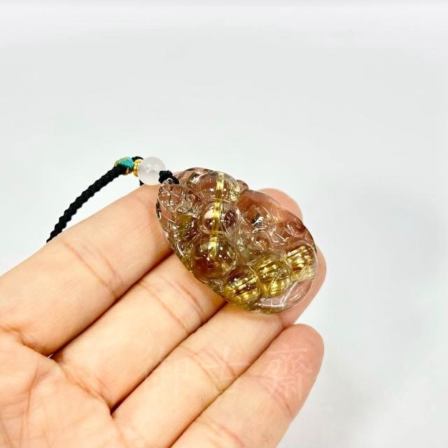 御古齋天然 清透料 金絲鈦晶 精雕貔貅 福豆 連中三元 粗絲板鈦 晶體通透 財源廣進 收藏級 附盒 081302