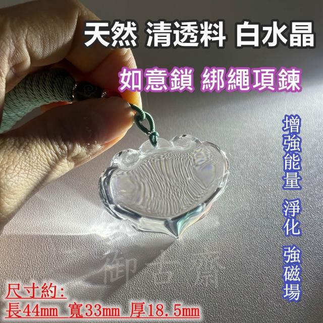 御古齋天然 清透料 白水晶 如意鎖 項墜 綁繩項鍊 增強能量 淨化 強磁場 吉祥如意 保平安 附證 081908