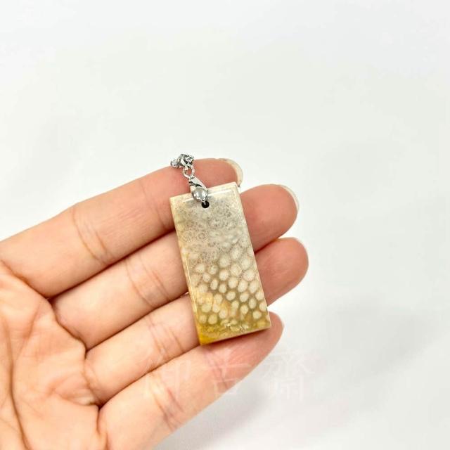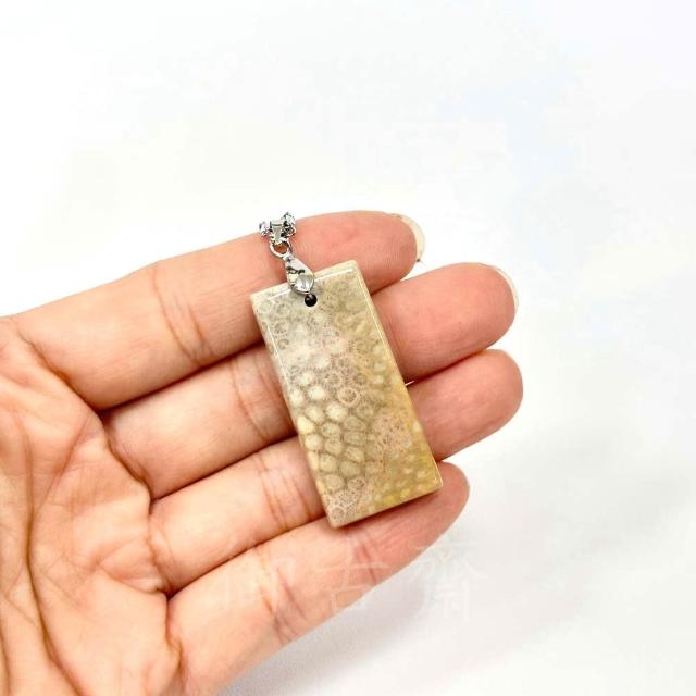 御古齋天然 珊瑚玉 菊花石 無事牌 花紋鮮麗 祥瑞富貴 和氣生財 生命寶石 提高心靈層次 附墜鍊 0807