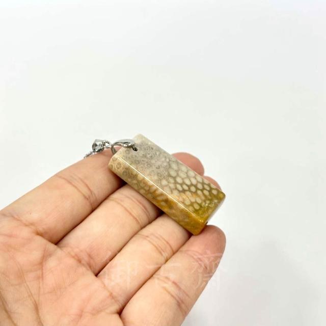 御古齋天然 珊瑚玉 菊花石 無事牌 花紋鮮麗 祥瑞富貴 和氣生財 生命寶石 提高心靈層次 附墜鍊 0807