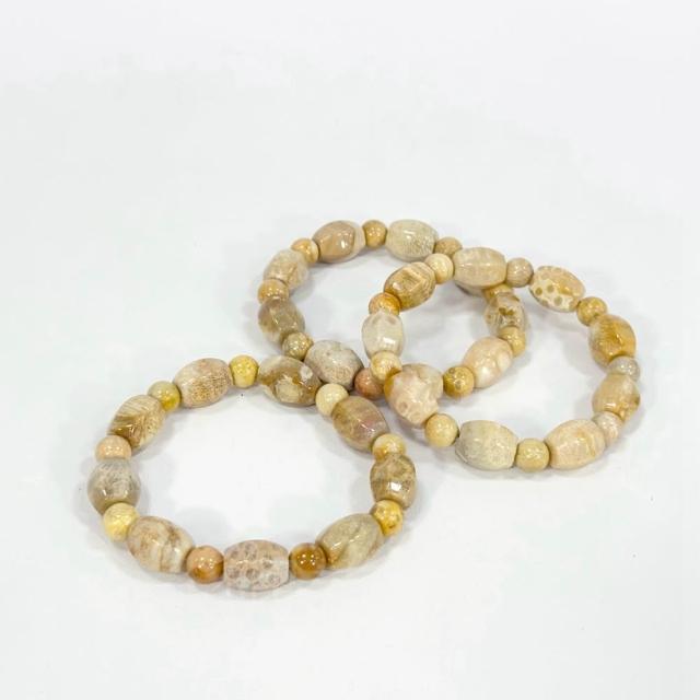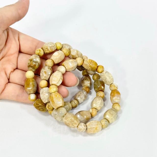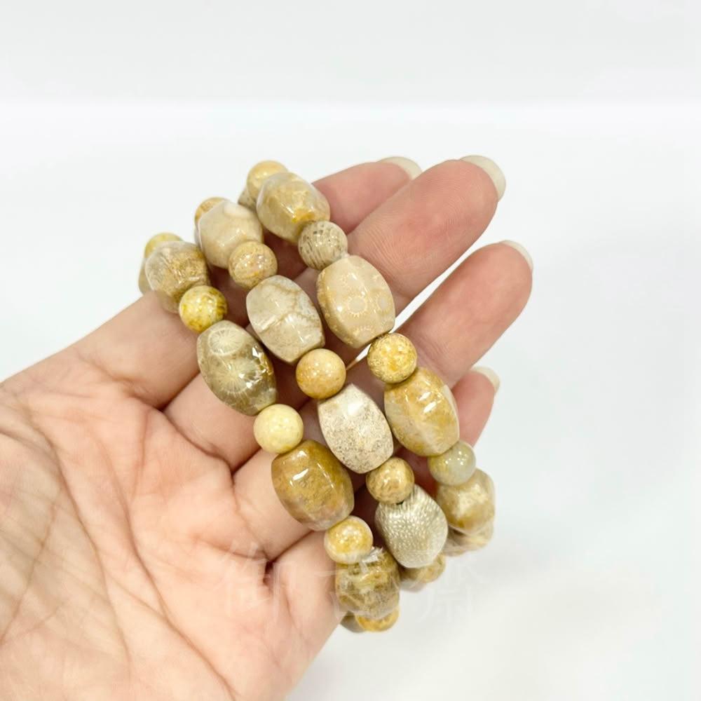 御古齋天然 珊瑚玉 菊花石 桶珠 手珠 手鍊 玉化 祥瑞富貴 生命寶石 提高心靈層次 增強能量 0903