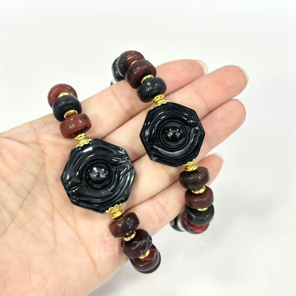 御古齋天然 九頁岩瑪瑙 八卦 天眼珠 桶珠 手珠 手鍊 佛教聖物 開運避邪 扭轉乾坤 擋煞 平安件 0902