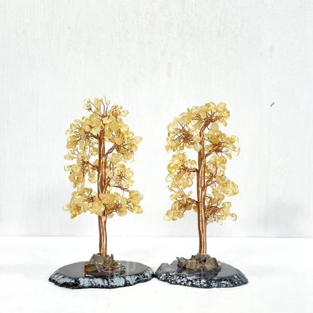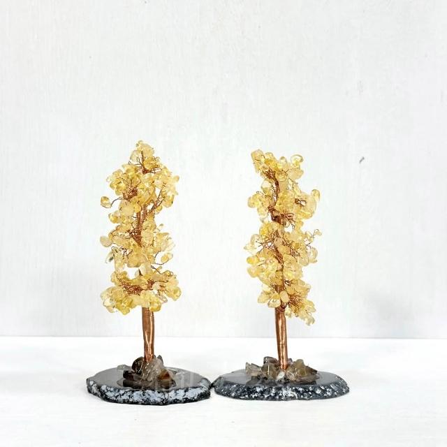 御古齋天然 黃水晶 小招財樹 小發財樹 銅絲樹枝 玉石底座 增補五行 裝飾擺設 居家辦公 風水開運擺件 0619