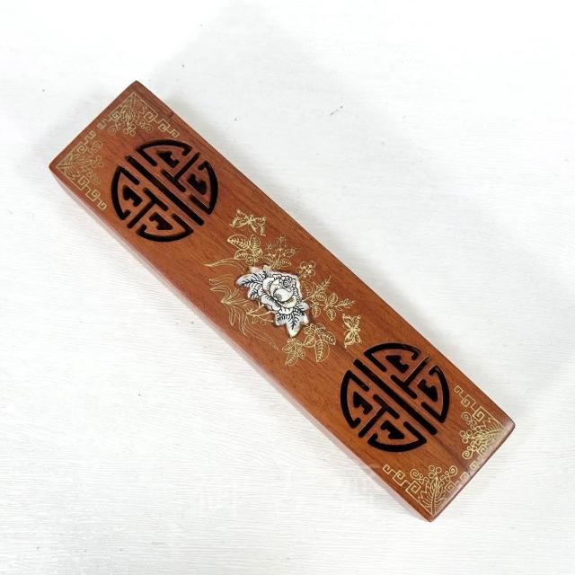 御古齋花梨木 鏤空雕刻 燙金鑲貝蓮花 筷子組 筷盒 原木筷子 一組10雙 多用途 線香盒 收納盒 0903
