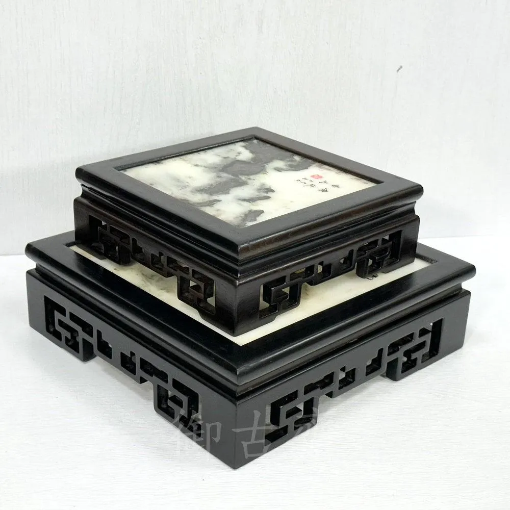 御古齋黑檀木 國畫石 石面 方形底座 四方底座 窗花 藝品展示底座 木座 花台 花座 實用擺設 擺飾 0619