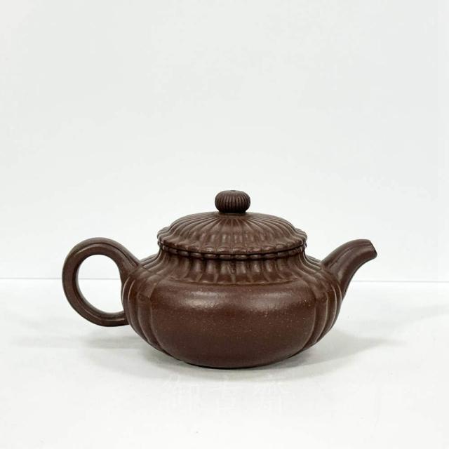 御古齋中國宜興 紫砂壺 名師 沈漢生 菊辦壺 梨皮壺 茶壺 名家壺 手工拉胚撰刻壺 茶道精品 010705