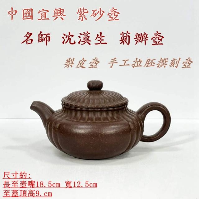 御古齋中國宜興 紫砂壺 名師 沈漢生 菊辦壺 梨皮壺 茶壺 名家壺 手工拉胚撰刻壺 茶道精品 010705