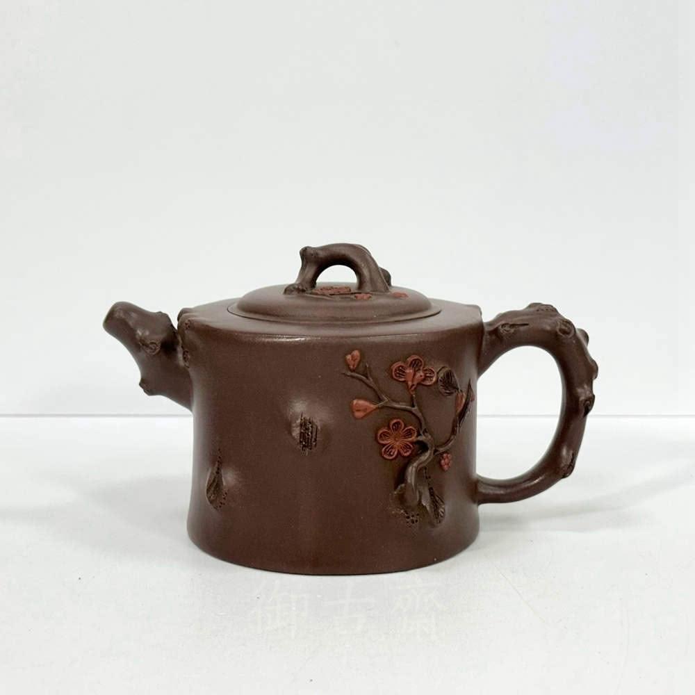 御古齋中國宜興 紫砂壺 名師 汪寅仙 梅桩壺 泡茶壺 名家款 手工拉胚撰刻壺 有底款 茶道精品 010706