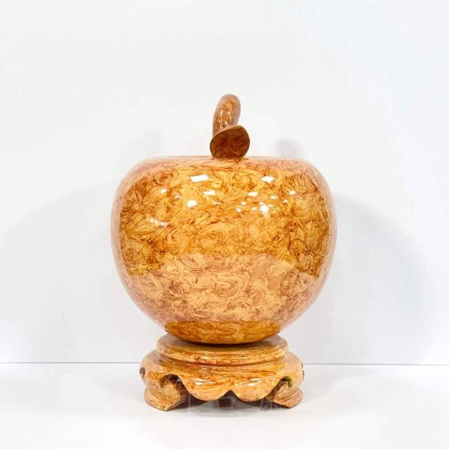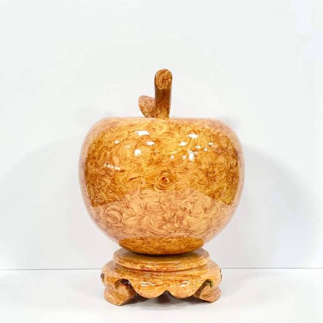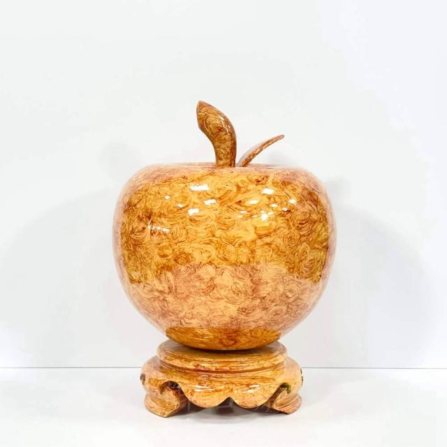 御古齋樟木 手繪藝術 蘋果 開運蘋果 帶底座 底座可旋轉 實木厚重 平平安安 迎財納福 風水開運擺件 0127