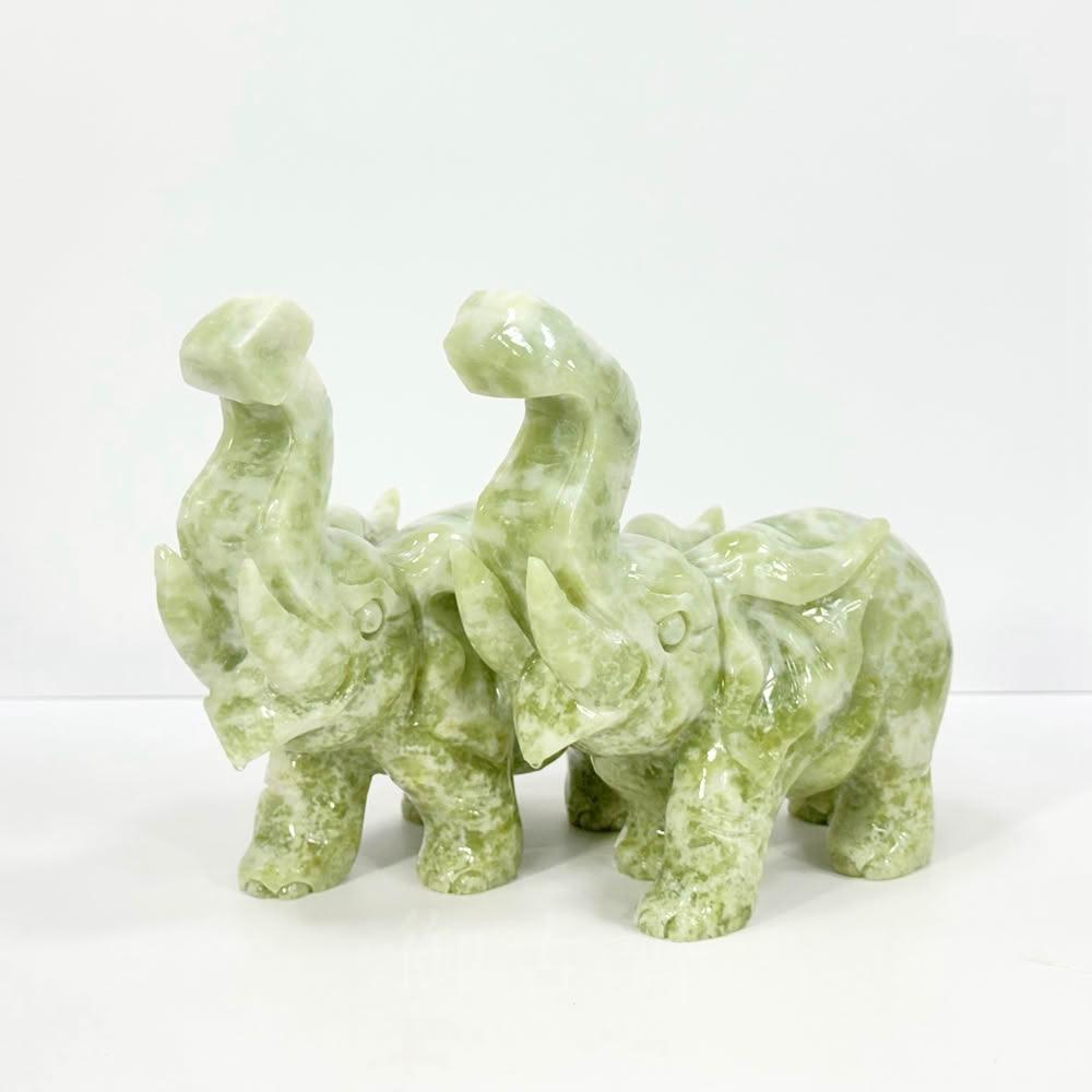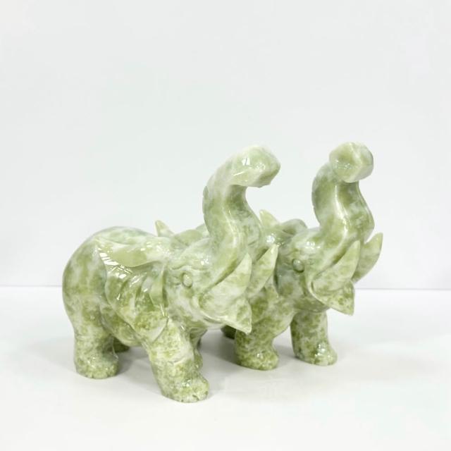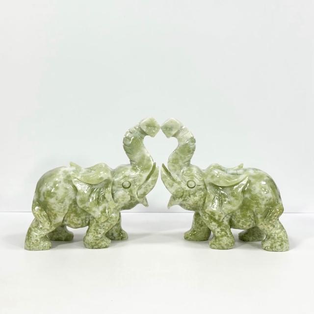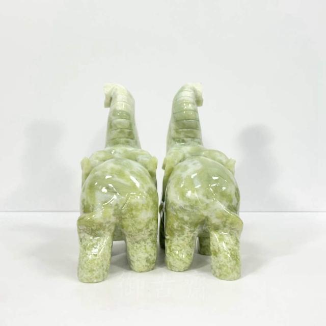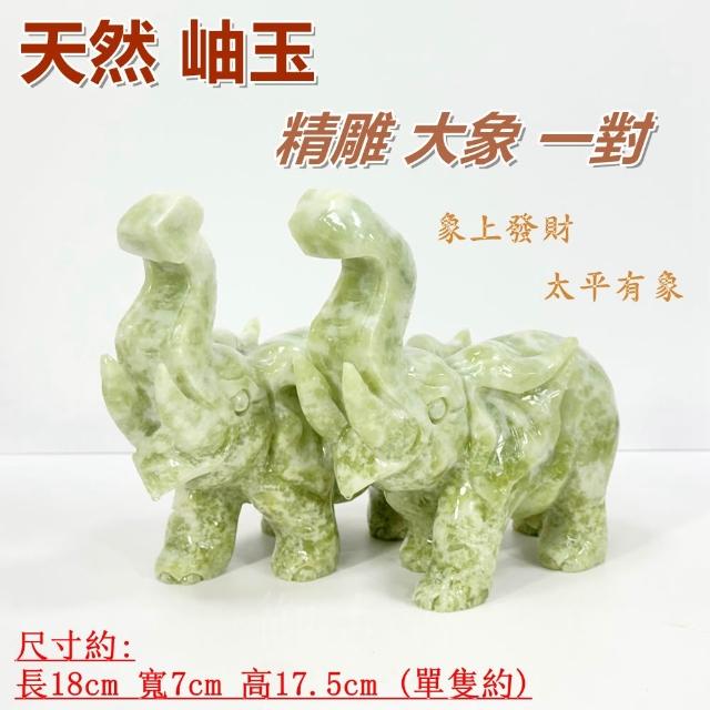 御古齋天然 岫玉 精雕 大象 一對 象上發財 太平有象 出將入相 平安吉祥 招福招財 風水開運擺件 0119