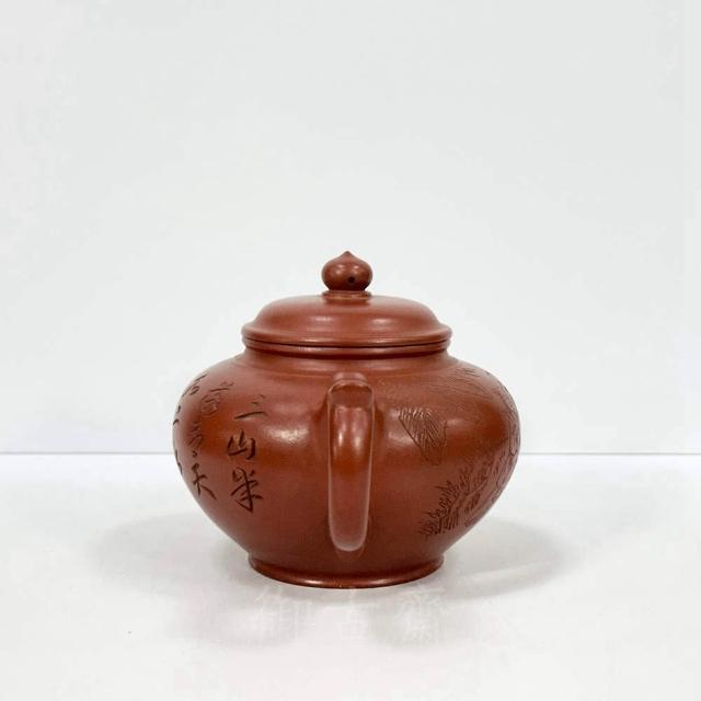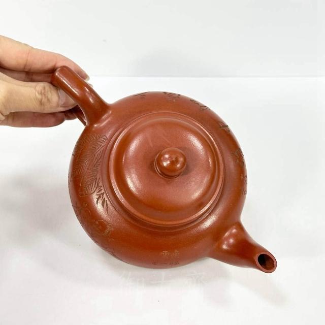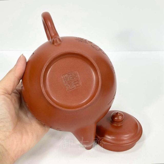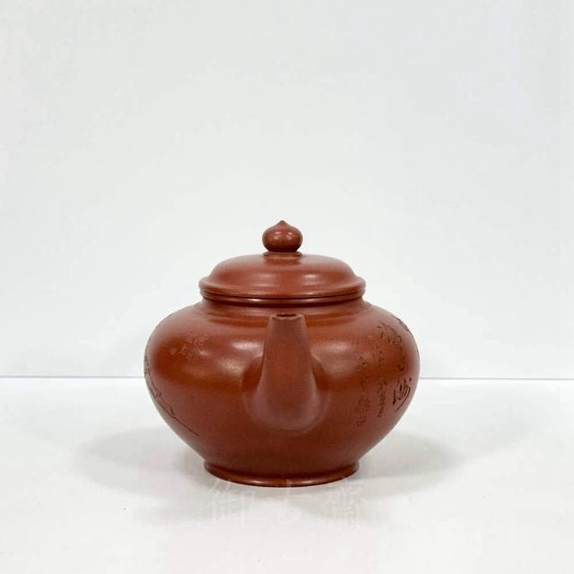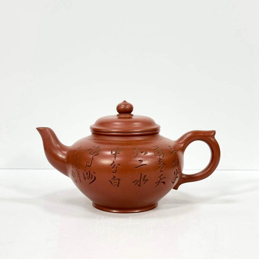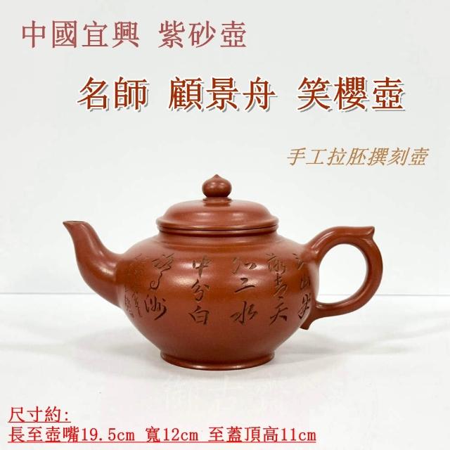 御古齋中國宜興 紫砂壺 名師 顧景舟 笑櫻壺 朱泥壺 名家款 手工拉胚撰刻壺 茶道精品 附盒 012001