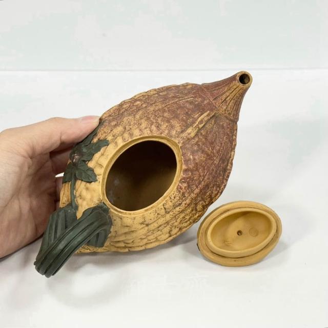 御古齋中國宜興 原礦段泥 名師 蔣蓉 佛手壺 泡茶壺 名家款 手工拉胚撰刻壺 茶道精品 附盒 012003