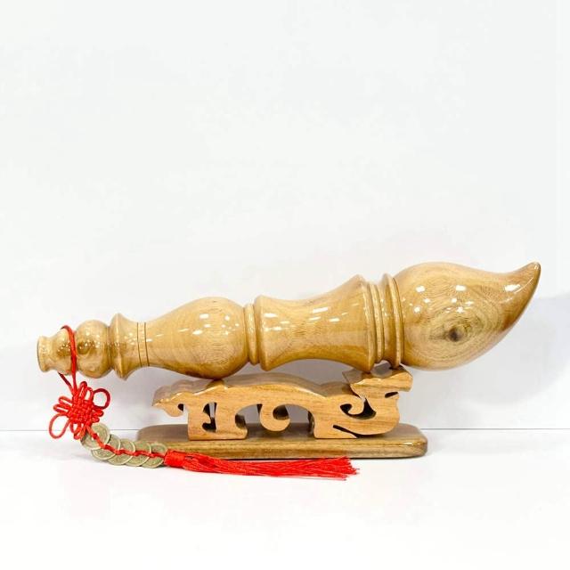 御古齋樟木 精雕 文昌筆 40cm 大筆進財 升官達運 招財聚氣 風水開運擺件 附雕龍筆座 五帝錢 0127