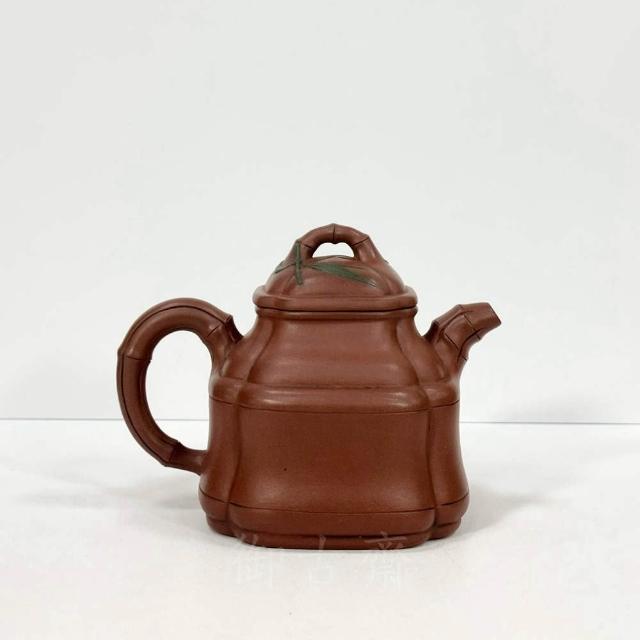 御古齋中國宜興 紫砂壺 名師 朱可心 竹鼓壺 四方竹鼎 名家壺 朱泥壺 茶壺 手工拉胚撰刻 有落款 012801