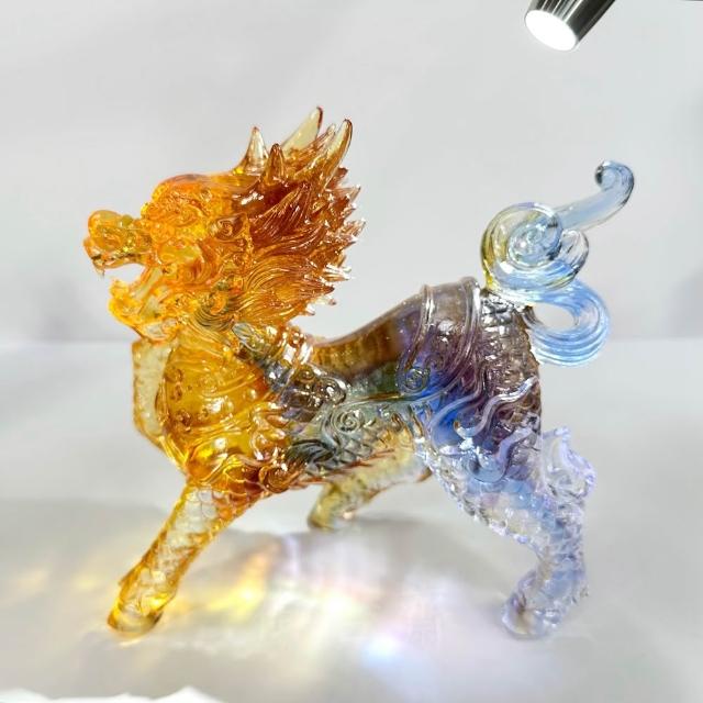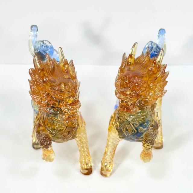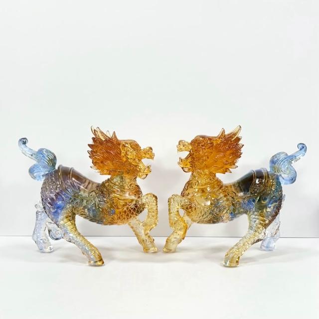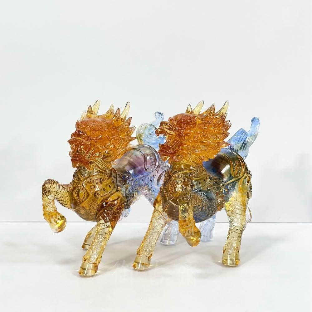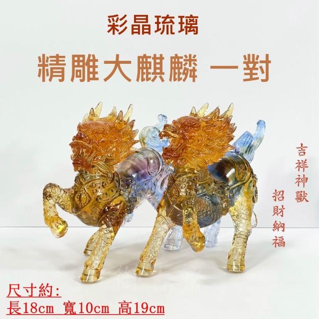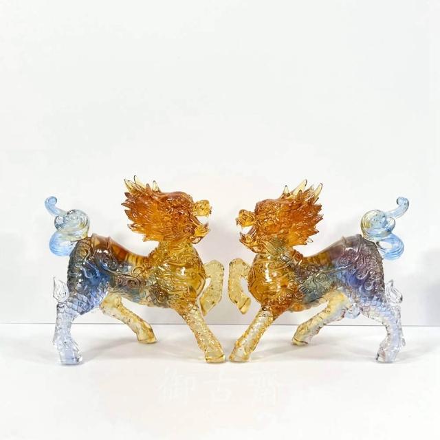 御古齋彩晶琉璃 精雕大麒麟 一對 精雕細琢 吉祥神獸 招財納福 鎮宅辟邪 事業昌隆 開運擺件 0210